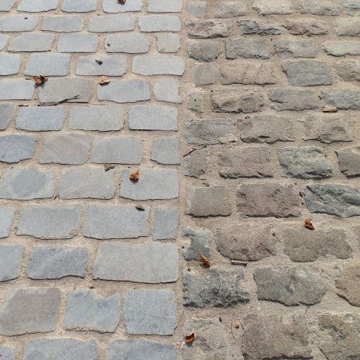 But let's start at the beginning. Cobblestones are probably the most reused building material in Belgium. The reason is partly historical. Before WWII, there were many cobble quarries in our country. Quenast, for example, was the world's largest producer in the 1930s, exporting its extremely resistant porphyry as far away as New York. By the 1960s, however, this local and largely handmade production had almost completely ceased. Today, Quenast still mines, but its porphyry is crushed into gravel and railway ballast.