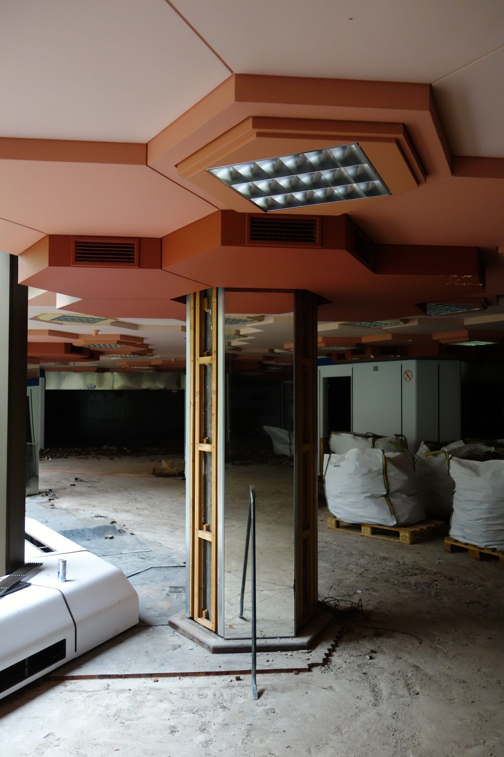 This iconic hexagonal building is currently under renovation, with respect for the original design. Rotor DC was tasked with removing interior finishings that were apt for reuse but would not find a place in the renovated building.