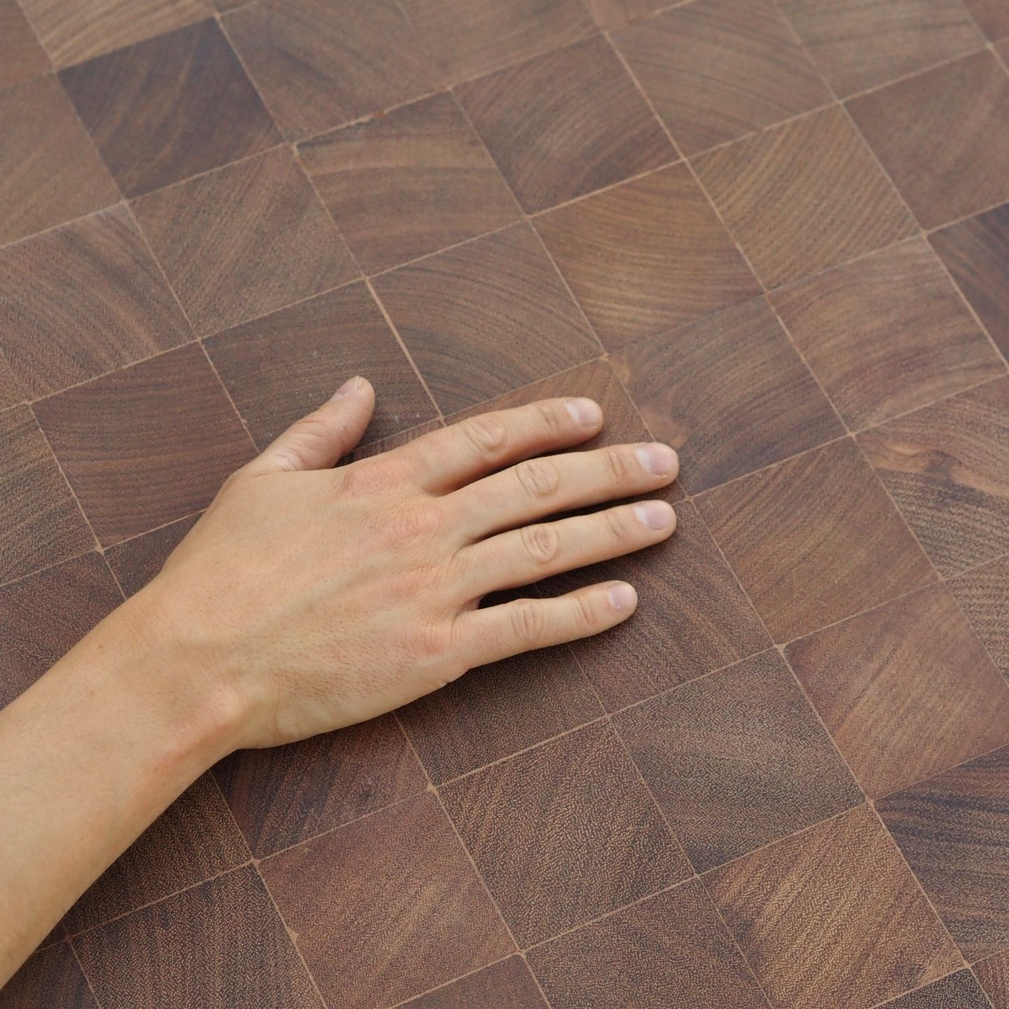 End grain parquet (kopshout / bois debout) is a type of flooring made up of wooden tiles cut perpendicular to the growth direction of the wood. In post-war architecture, it was often used for floors that had to be hard-wearing, or express a sense of grandeur, or both. Entrance halls to museums, restaurants in bank headquarters, etc.