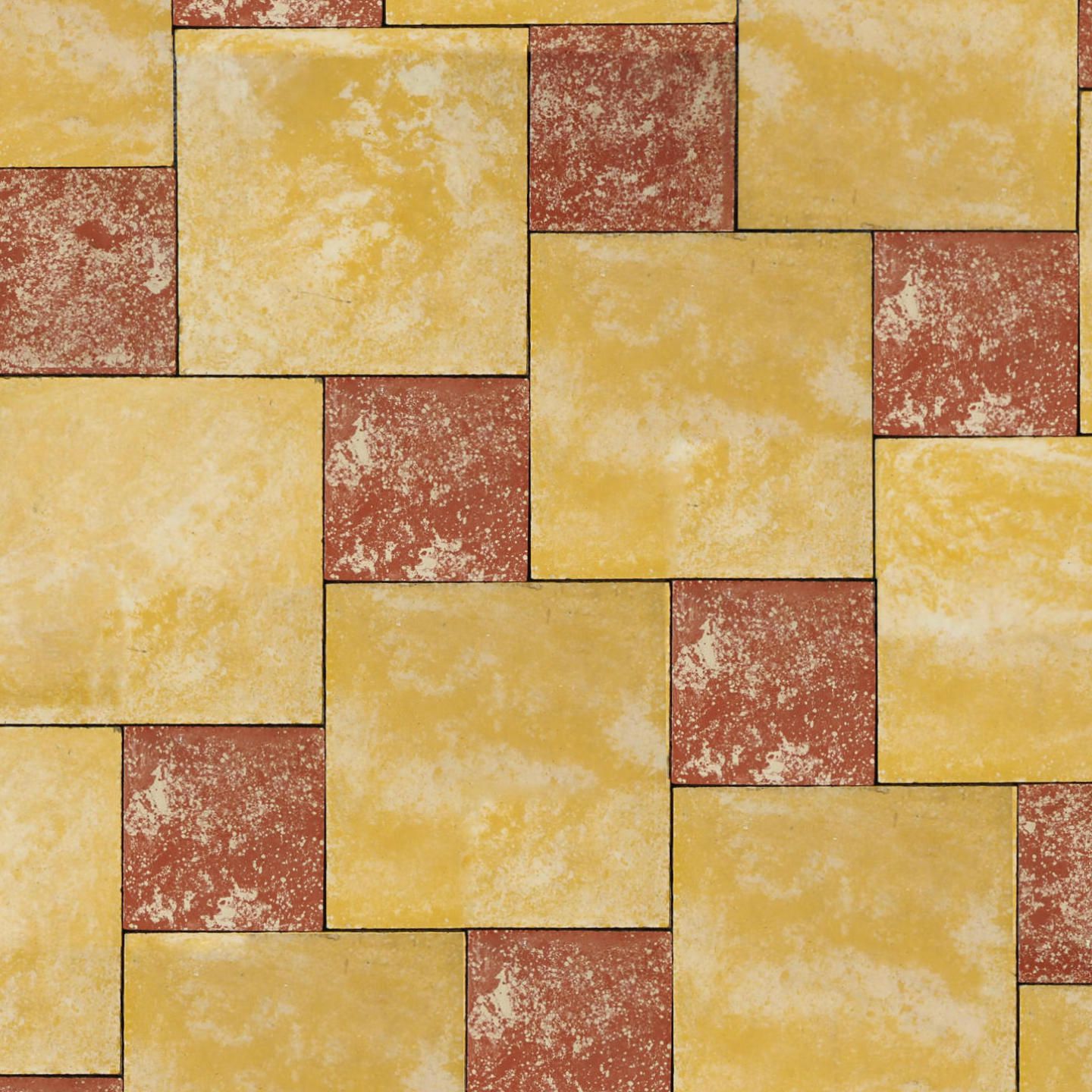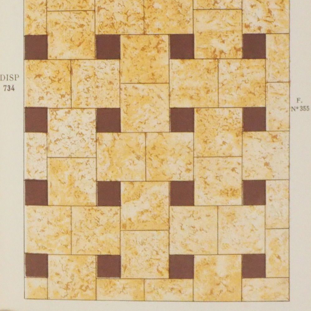 Old floor tile catalogs are a fantastic source of inspiration! From the 1920s onwards, tile manufacturers abandoned illustrative patterns in favor of simpler textures. A particularly popular effect back then was the 'flammé': a cloudy combination of two shades, reminiscent of the way milk mixes with coffee.