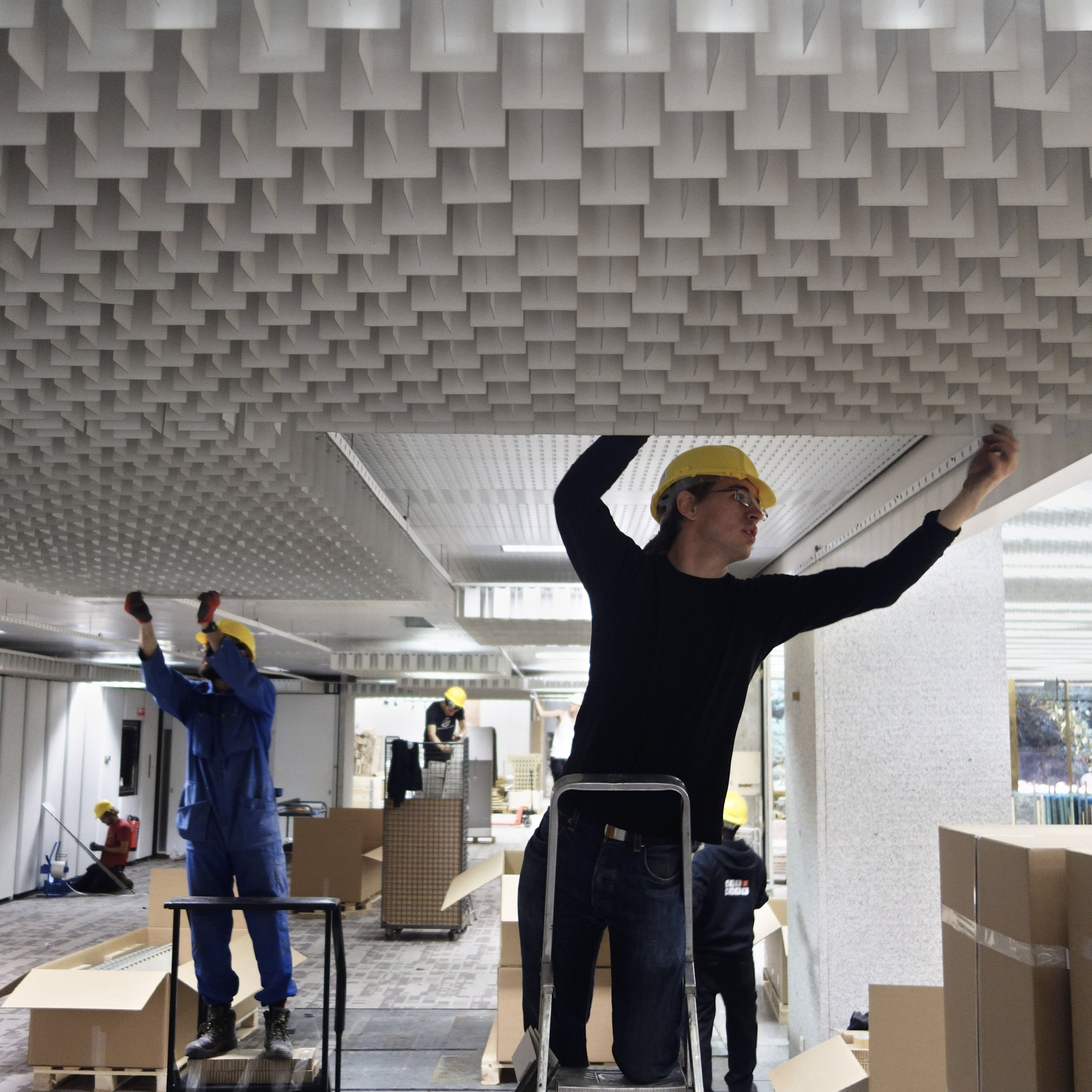 Rotor’s mission included the inventory of salvageable materials, the organisation of their demount, the supervision of the necessary works as well the identification of new destinations for the materials or of projects they could be integrated in. Thousands of square meters of ceilings and floors, the entire cafeteria, a myriad of decorative elements, …