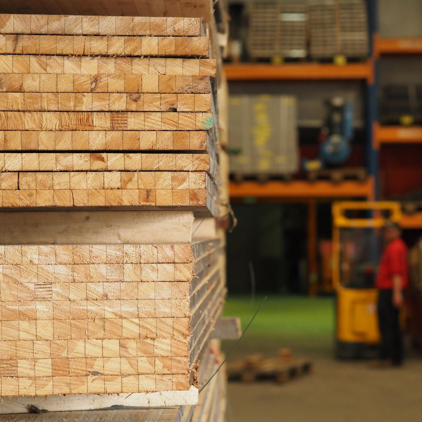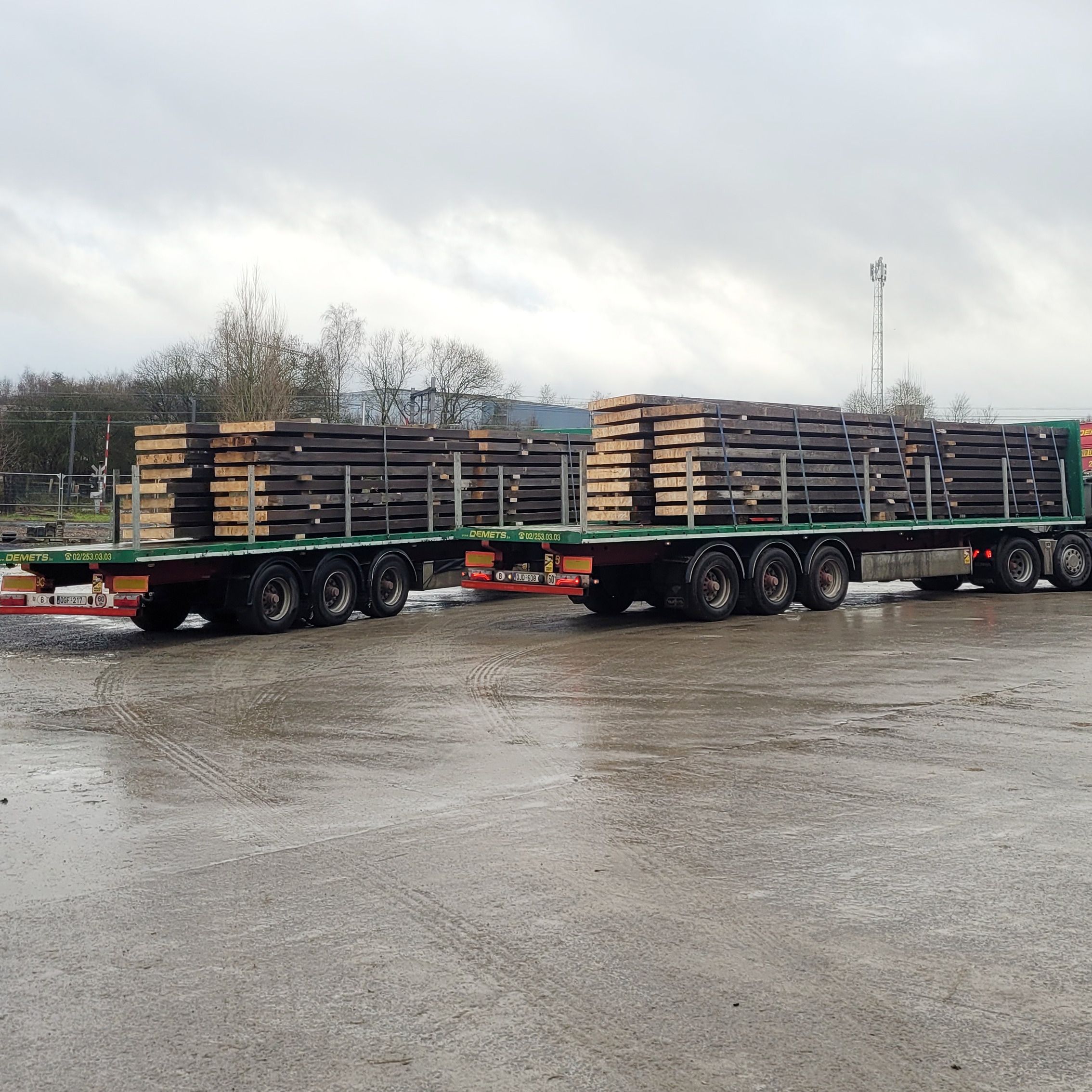 Here's a surprise we've been preparing for a while. Last summer, we salvaged over 80 cubic metres of glued laminated timber from the roof structure of one of the former 'BOMACO' warehouses in Zellik, which are currently being converted. The 34 massive 18-metre-long pine beams were first inspected on site to remove any remaining screws or nails, then cut to length for transport. As we have done in the past with similar smaller batches, we then sawn the beams parallel to the large face to obtain panels that can be used for interior design: think tables, wall cladding, furniture, etc. This time we have chosen thicknesses from 3.5 cm to 6 cm. And the good news is: we have over 1300 square metres of panels! Our warehouse now looks (and smells!) like a timber yard.