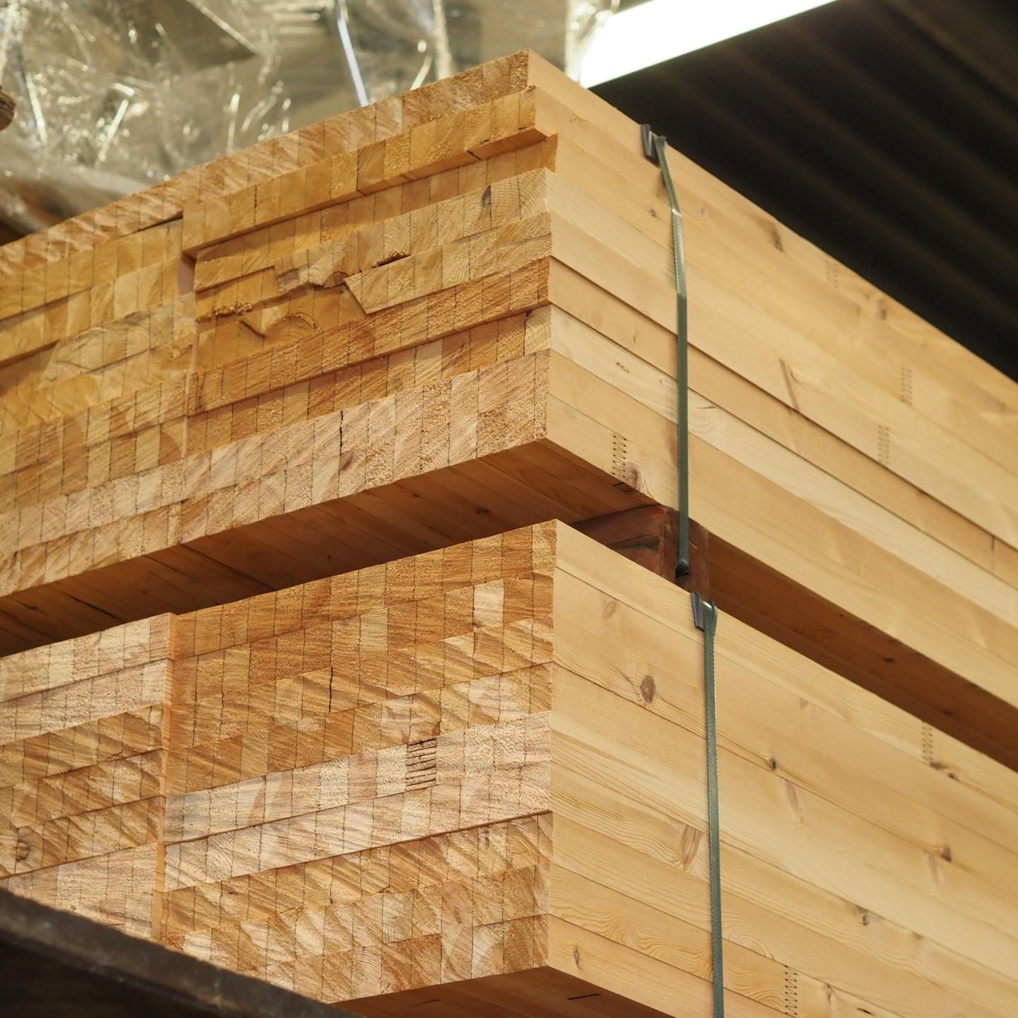 Glued laminated timber salvaged from the former 'BOMACO' warehouses in Relegem