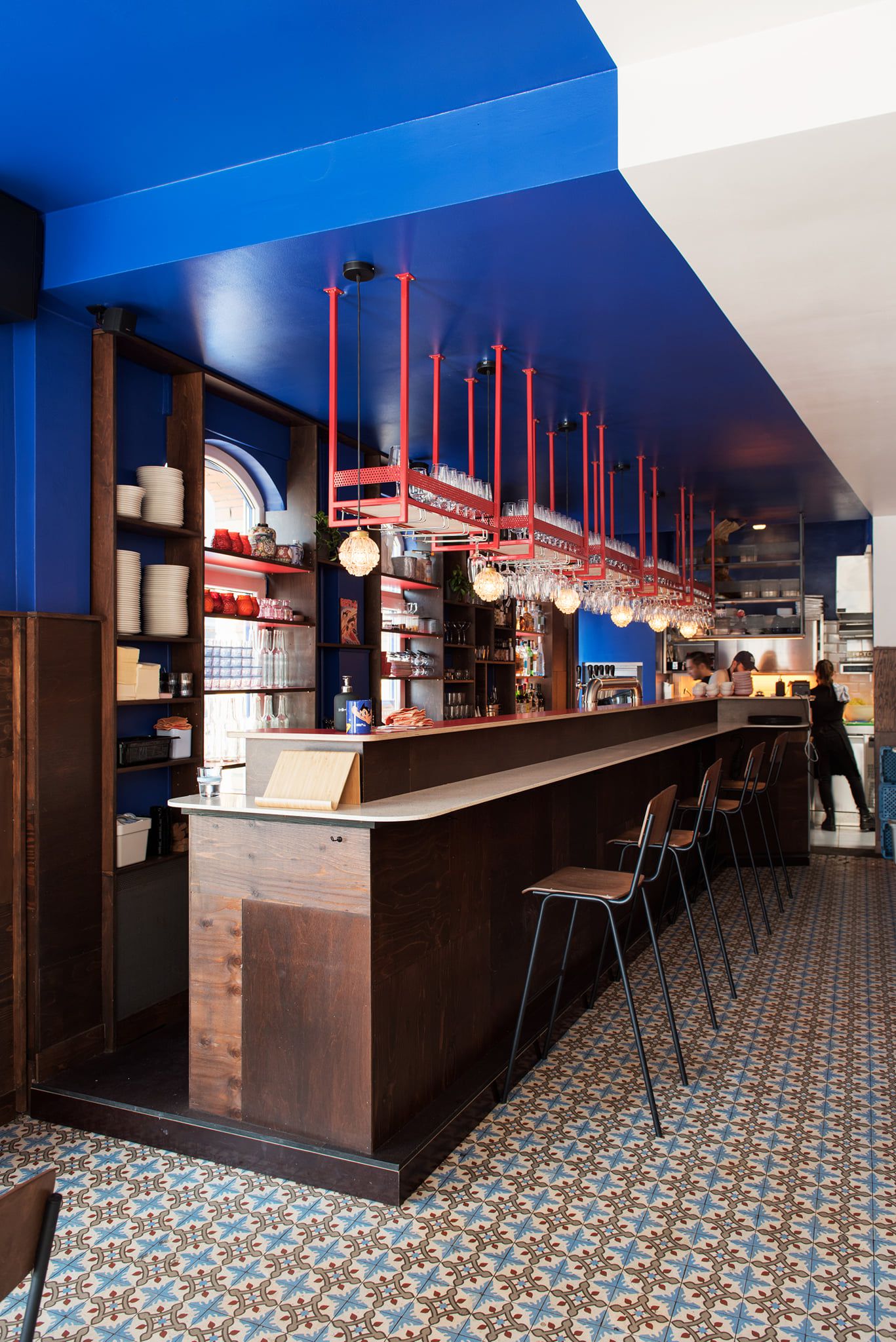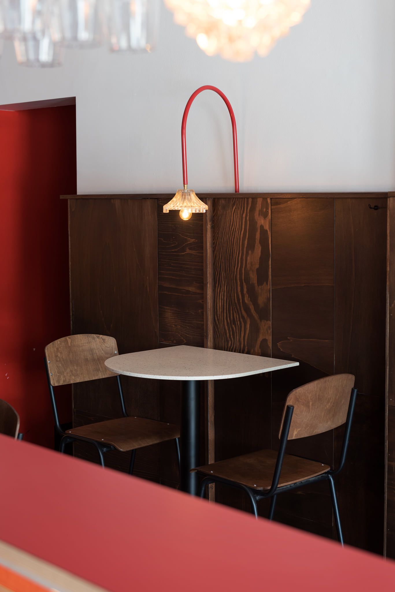 Onbetaalbaar designed the interior for ramenbar Astro Boy. You’ll notice our Sangoku hanging lights above the counter (almost sold out), and an ingenious adaptation of our Jacqueline hanging lights that were mounted on arched tubes by the designers. The project uses plenty of other reused materials as well, such as the stained wooden paneling. We love the colours and atmosphere of this place!
