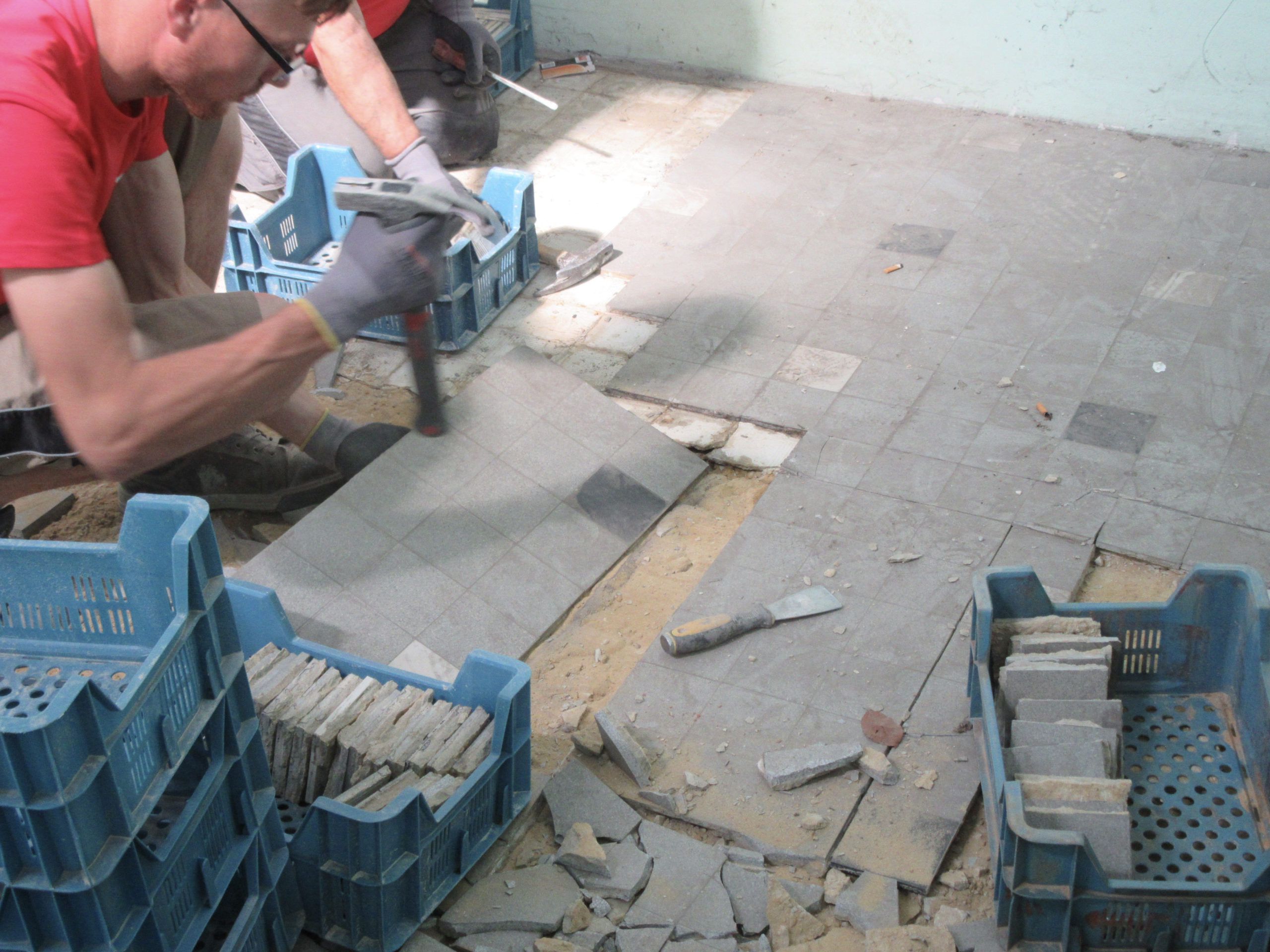 Rotor DC was tasked with the removal of a few hundred square meter of ceramic tiles. The 1950’s tiles are now being reconditioned so they are ready for reuse. They will be reinstalled in another part of the same building later this year.